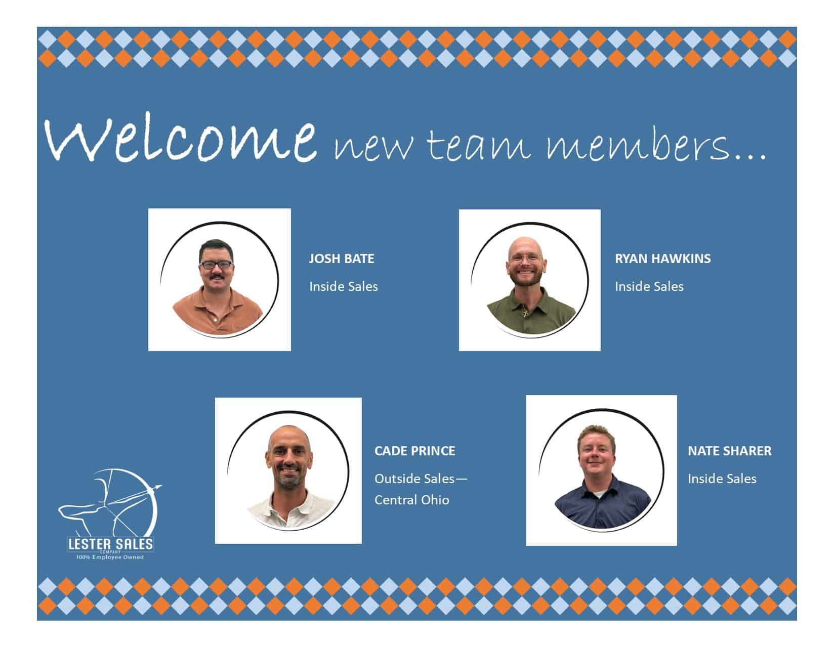 Lester Sales would like to welcome four new employees to our team. Josh Bate (yes, he is the son of Greg Bate) is an inside salesperson handling Dialight, Ericson, Federal Signal, Legrand and Panduit. Ryan Hawkins will be handling inside sales for our commodity lines. Cade Prince is an outside salesperson focusing on commercial sales in the Central Ohio territory. Nate Sharer (another familiar name – he is the brother of Cody Sharer) is an inside salesperson handling Ericson, Legrand and SolaHD. We are excited to have all four of these young, sales professionals be part of our organization!